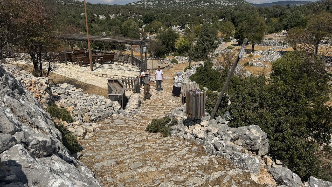 Antik taş yolun kıvrımları, su sarnıçları ve kervanların konakladıkları han kalıntıları tüm detaylarıyla dron ile görüntülendi.