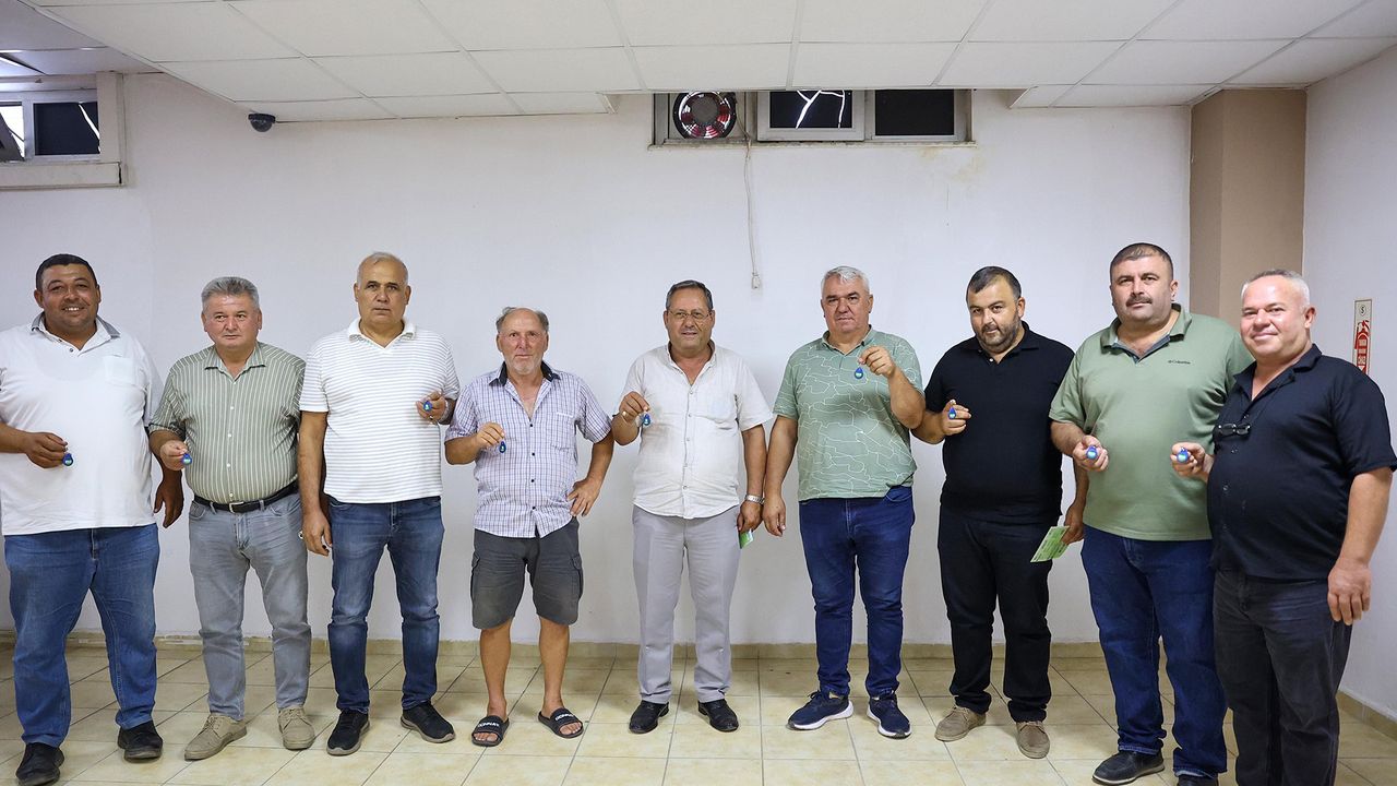 Eğitim sonunda üreticilere Çiftçi Kart çipleri teslim edilirken, katılımcı çiftçi ve muhtarlara zeytin fidanı dağıtıldı.