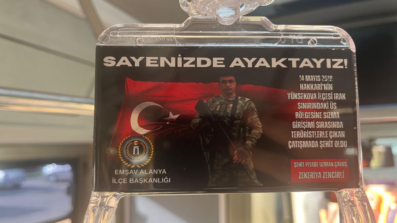 Şehitleri unutulmaması için bu şekilde bir proje hazırladıklarını söyleyen Alanya EMŞAV Başkanı Hakan Çoban, "'Şehitlerimizi unutmadık, unutmayacağız ve unutturmayacağız' sloganıyla yola çıktık. Bu kapsamda tüm Alanya halkının da şehitlerini unutmaması için böyle bir çalışma yaptık. Çünkü şehitlerimizin sayesinde bu memleket ayakta kalıyor. Şehitlerimiz sayesinde ayakta durduğumuzu unutturmayacağız. Bizlere bu imkanı sağlayan yetkililere de teşekkür ediyoruz. Şehit ailelerimizde bu görselleri gördüklerinde çok mutlu oldular. Tabii onların mutluluğu bizleri ayrıca mutlu etti. İnsanların otobüse bindiğinde oğullarını ve eşlerini görmelerini çok istediler" dedi.