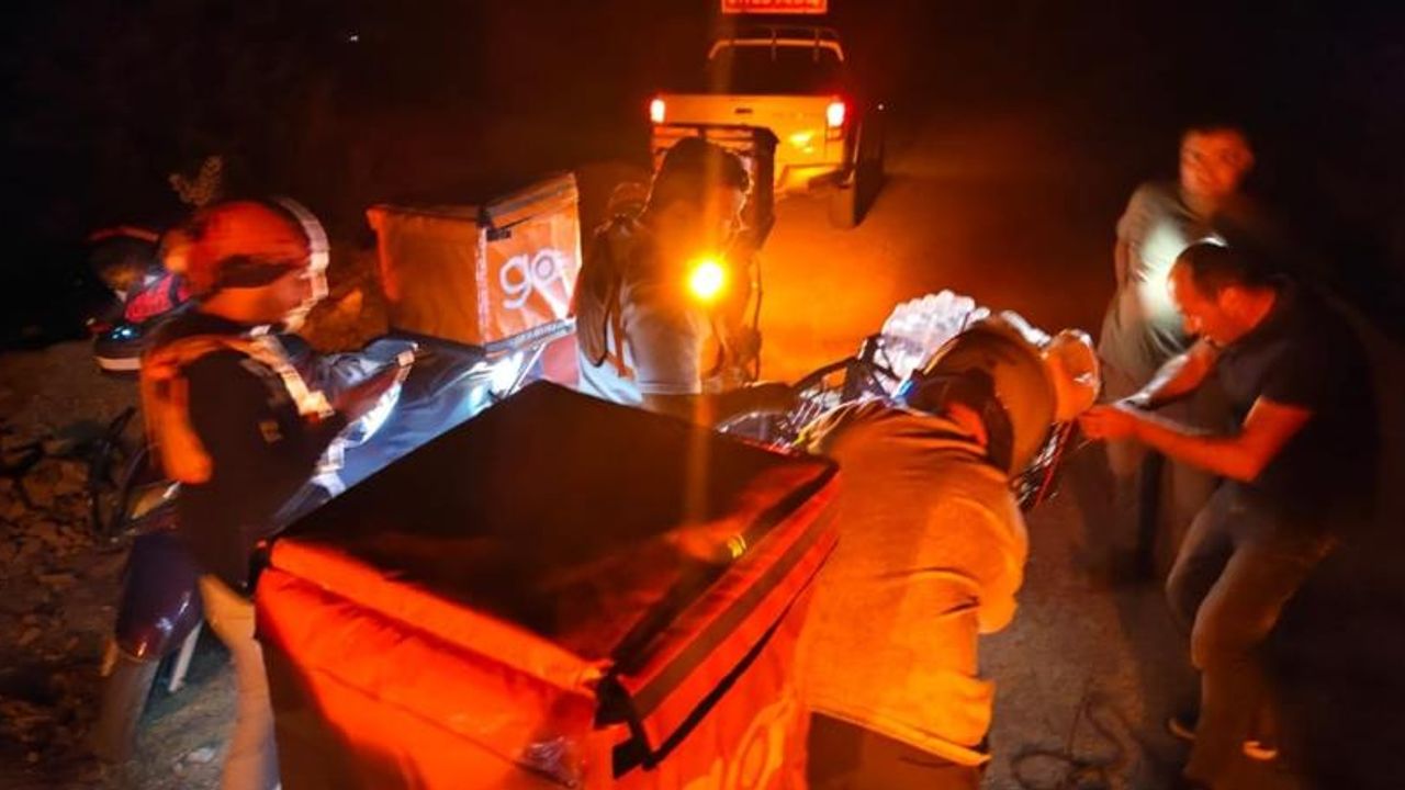 İSMAK motorlu arama kurtarma ekipleri ve ilçedeki yaklaşık 100 motokurye kurdukları WhatsApp grupları aracılığıyla organize olarak yangın bölgesindeki çalışmalara katıldı. Jandarma, orman ve itfaiye ekiplerinin koordinasyonunda hareket eden kuryeler, yangın bölgesindeki çalışmalara lojistik destek sağladı. Motokuryeler bölge esnafının söndürme çalışmasında görevli personele destek olmak amacıyla topladığı su, ayran ve yemekleri ekiplere ulaştırdı.