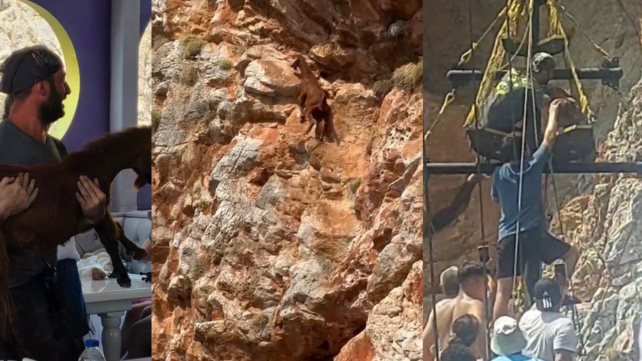Öte yandan, dağ keçisinin kurtarılma anları teknedeki turistler tarafından cep telefonu kamerasına yansıdı.