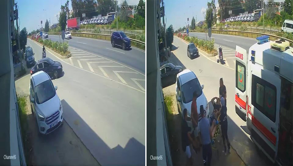 Antalya-Manavgat D-400 Karayoluna çıkan tali yolda Seyir halindeki İ.Ç.'nin kullandığı motosiklet, tali yoldan önüne çıkan V.N.'nin kullandığı otomobile çarptı. Güvenlik kamerasına yansıyan görüntülerde, çarpmanın etkisiyle motosiklet sürücüsünün yaklaşık 15 metre sürüklendiği görüldü.