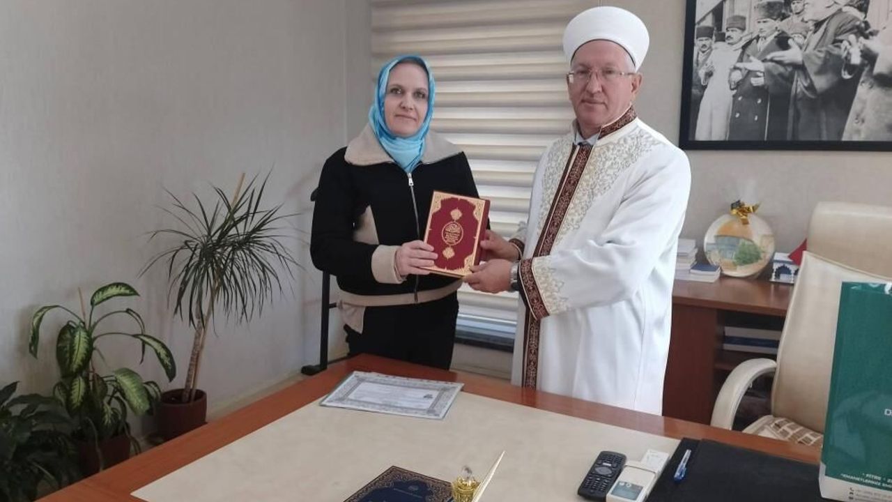Başar eşliğinde kelime-i şehadet getiren Struss, 'Elif' ismini aldı kendisine Kur'an-ı Kerim ve Almanca meali hediye edildi.