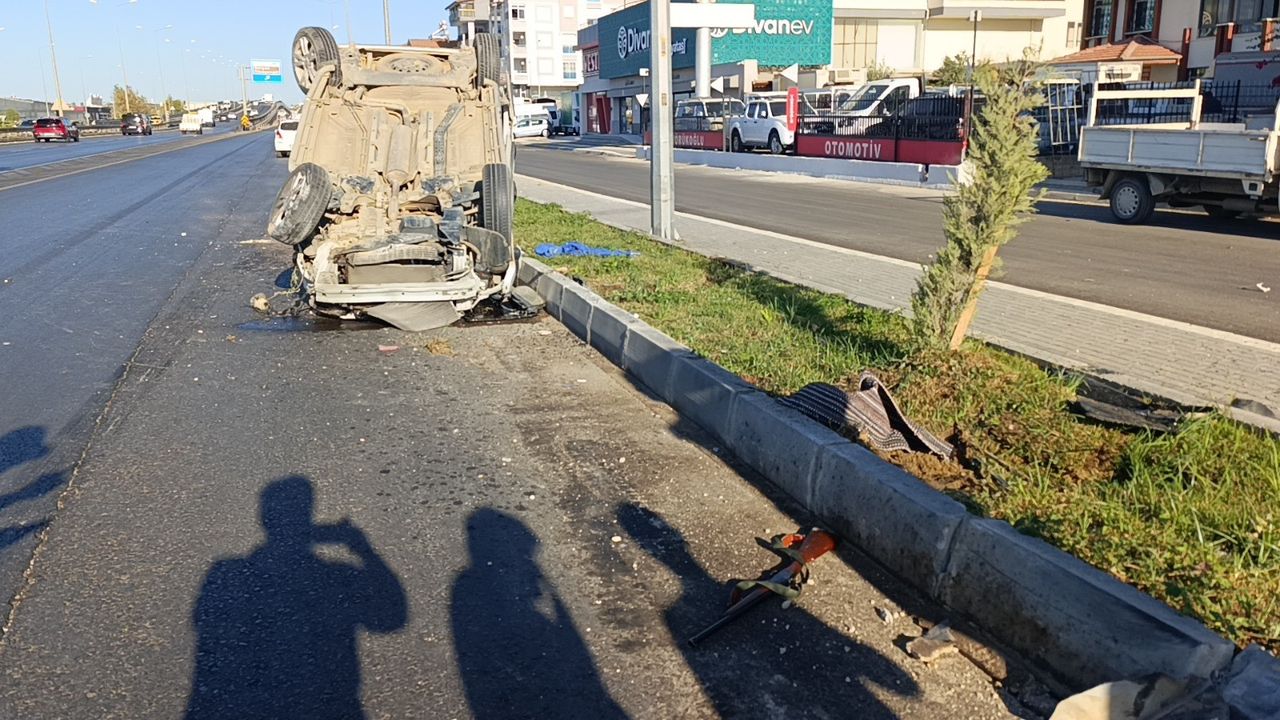 Kazada yaralanan ve vatandaşlarca araçtan çıkarılan hafif ticari araç sürücüsü Emine K., 112 Acil Sağlık ekiplerinin olay yerindeki ilk müdahalesinin ardından ambulansla hastaneye kaldırıldı. Kaza anı ise bir iş yerinin güvenlik kamerasına saniye saniyesine yansıdı. Görüntülerde, sol şeritteki hafif ticari aracın aniden sağ şeride geçmeye kalktığı sırada tırın tamponuna dokunarak takla atarak ters durduğu görüldü.