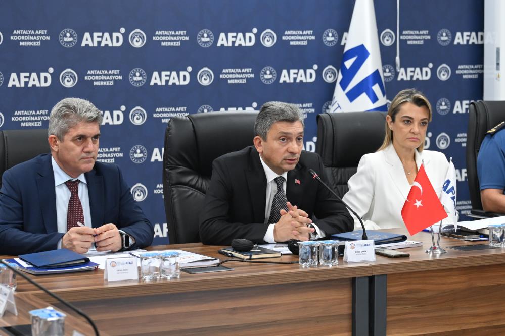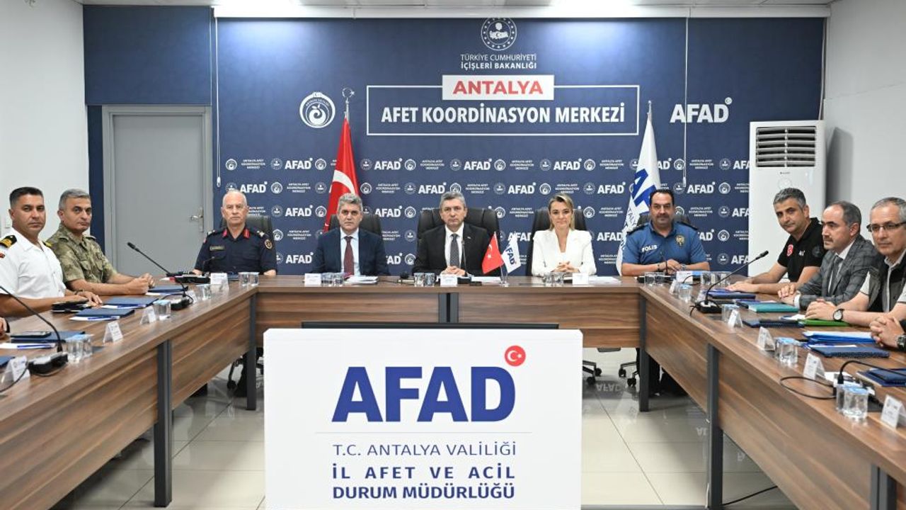 AFAD İl Müdürlüğü Afet Koordinasyon Merkezi'nde düzenlenen toplantıya Vali Hulusi Şahin, Vali Yardımcısı Tahsin Aksu, Antalya Büyükşehir Belediyesi Genel Sekreteri Cansel Çevikol Tuncer, İl Jandarma Komutanı Tuğgeneral Tarık Hekimoğlu, İl Emniyet Müdürü İlker Arslan, 3. Piyade Eğitim Tugayı Komutanı Piyade Albay Hüseyin Yılmaz, AFAD İl Müdürü Necmi Erçin ve ilgili kurum ve kuruluşların yetkilileri ile STK temsilcileri katıldı.