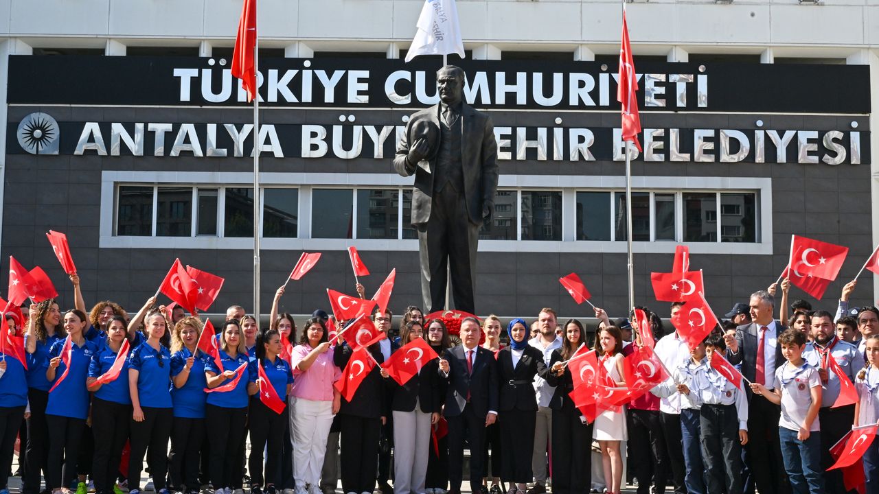 Tören, Cumhuriyet'in kurucusu Gazi Mustafa Kemal Atatürk'ün anıtına Başkan Muhittin Böcek’in çelenk sunulmasıyla başladı. Saygı duruşunun ardından, Antalya Büyükşehir Belediye Bandosu (ABBO) eşliğinde İstiklal Marşı okundu. Başkan Böcek, çelenk töreninin ardından sporcular ve gençlerle Atatürk anıtı önünde hatıra fotoğrafı çektirdi.