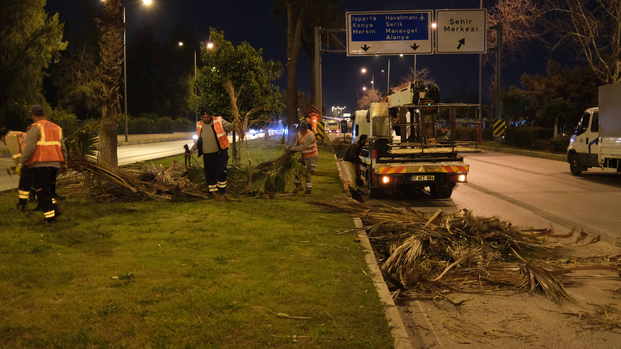 Antalya Büyükşehir Belediyesi, ağaçların sağlıklı büyümesi ve bahar aylarının yaklaştığı bu günlerde ana arterler ve caddelerde ağaç budama çalışması yapıyor. Budama çalışmaları yaşanabilecek olumsuzlukların en aza indirilmesi amacıyla gece saatlerinde yapılıyor.