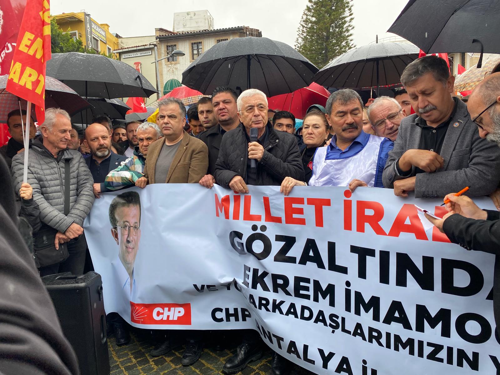 İstanbul Büyükşehir Başkanı ve aynı zamanda Cumhurbaşkanı aday adayı olan Ekrem İmamoğlu’nun gözaltına alınmasının ardından Cumhuriyet Halk Partisi tarafından tüm ülkede saat 14.00’da basın açıklaması düzenledi. Antalya’da Attalos heykelinin düzenlenen basın açıklamasına CHP Antalya İl Başkanı Nail Kamacı, Muratpaşa Belediye Başkanı Ümit Uysal, Döşemealtı Belediye Başkanı Menderese Dal, CHP ilçe başkanları, CHP gençlik kolları, sivil toplum kuruluşları ve pek çok Antalyalı vatandaş katıldı. İmamoğlu'nun gözaltı kararına ilişkin basın açıklaması yapan CHP İl Başkanı Nail Kamacı, hukukun silaha dönüştüğünü vurguladı.