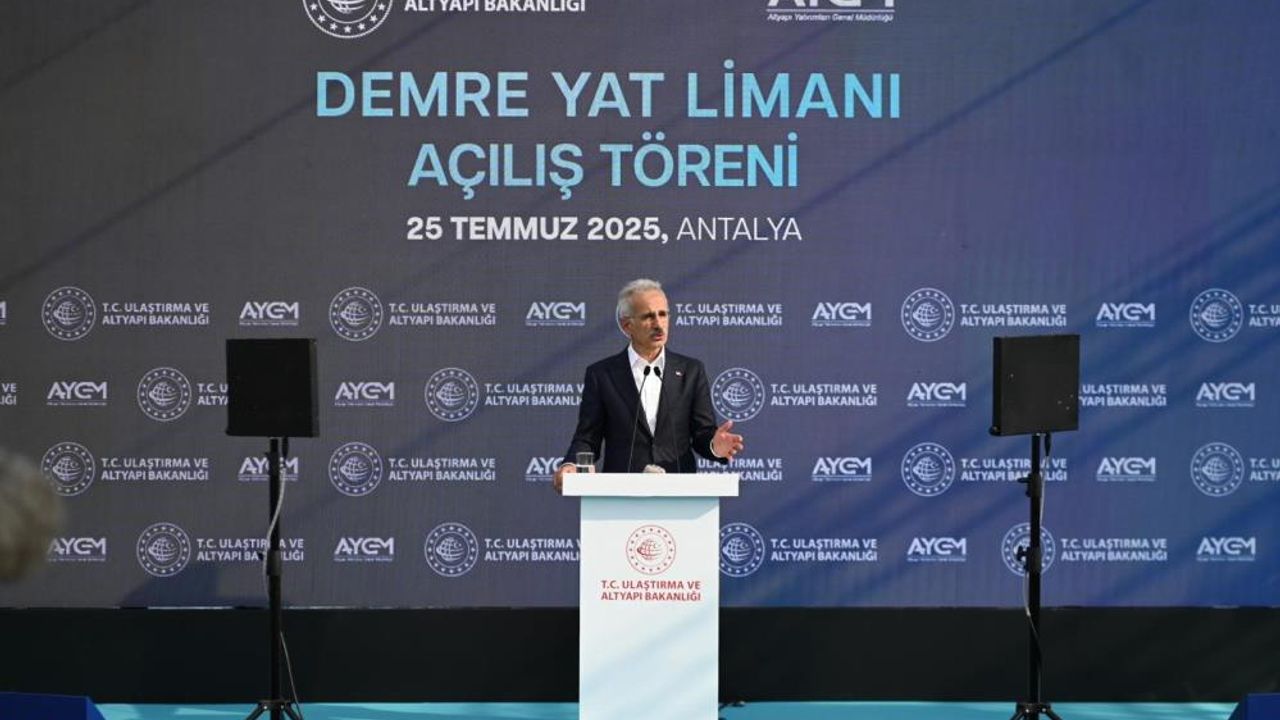 Ulaştırma ve Altyapı Bakanı Abdulkadir Uraloğlu, Antalya'nın Demre ilçesinde yapımı tamamlanan 700 yat bağlama kapasiteli Demre Yat Limanı'nın açılış törenine katıldı. Açılışta konuşan Uraloğlu, yat limanının sadece bir marina değil, aynı zamanda turizm, ticaret ve sosyal yaşam merkezi olacağını söyledi.