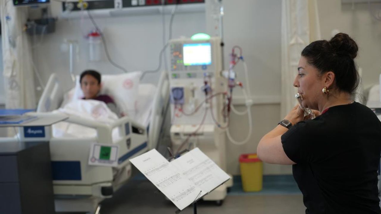 HEMŞİRE YAN FLÜTLE DESTEK OLUYOR