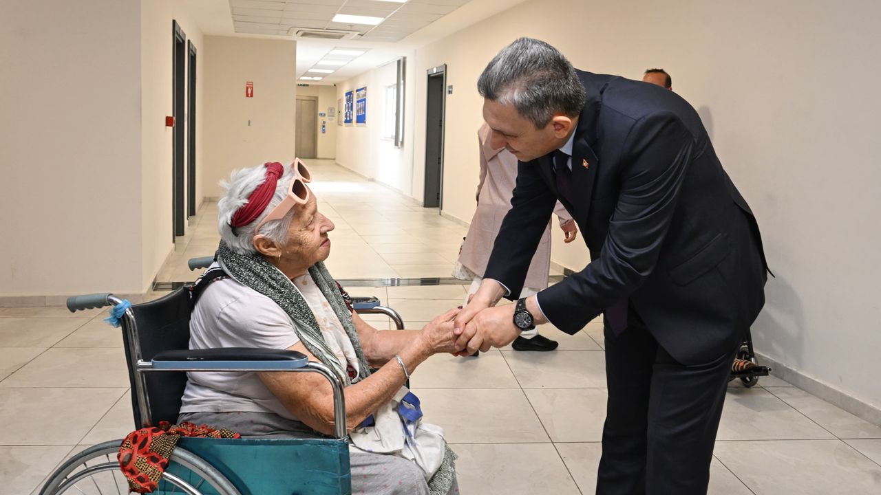 Bayram namazını Akdeniz Üniversitesi Camii'nde kılan Vali Hulusi Şahin, namazın ardından Antalyalılarla bayramlaşarak vatandaşlarla bir araya geldi. Daha sonra, eşi Ebru Şahin ile birlikte Antalya Huzurevi Yaşlı Bakım ve Rehabilitasyon Müdürlüğü'nü ziyaret eden Vali Şahin, burada kalan yaşlılarla sohbet edip bayramlarını kutladı. Yaşlılarla sohbet edip sağlıklı ve mutlu nice bayramlar dileyen Vali Şahin, "Bayramın anlamı, sevinci paylaşarak çoğaltmak ve üzüntüyü paylaşarak azaltmaktır. Millet olmanın anlamı da budur. Bizler de sizin evlatlarınız olarak hayır duanızı almak için buradayız. Sizlerin yanında, annelerimizin ve babalarımızın sıcak şefkatini hissediyoruz. İnşallah daha nice Ramazan Bayramı'na sağlık ve afiyetle kavuşuruz. Allah milletimize ve devletimize huzur, refah ve mutluluk versin. Bu vesileyle, şu an görev başında olan tüm mesai arkadaşlarımıza da gönülden teşekkür ederim" dedi.