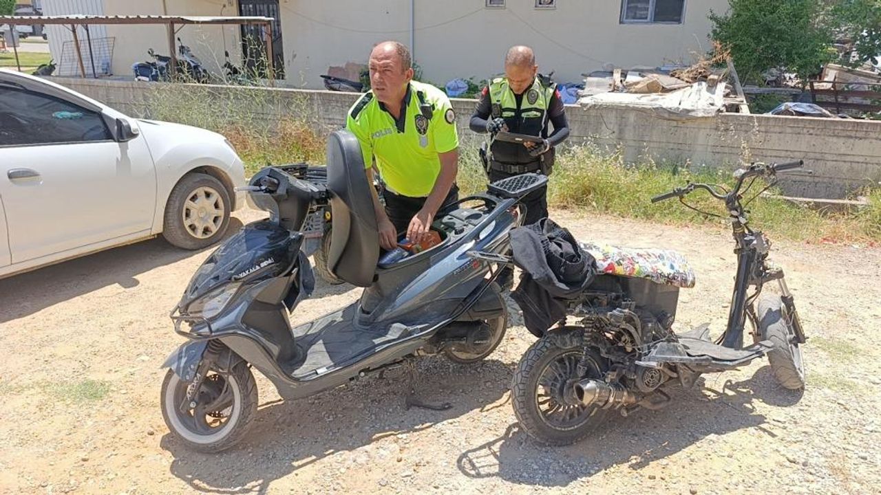 Motosiklet kullanan 3 çocuk, ifade için Cumhuriyet Polis Karakoluna götürülürken trafikten men edilen motosikletler yediemin otoparkına çekildi.