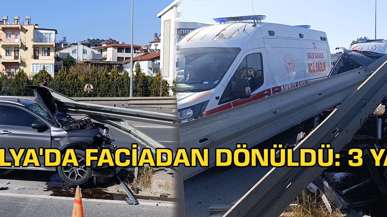 Antalya’da köprülü kavşak yan yola giren otomobil, karayoluna çıkan ve virajı geniş alan otomobile çarpmamak için köprülü kavşağın bariyerlerine çarptı. Kazaya neden olan otomobil, durmayarak yoluna devam ederken, bariyerlerin hurdaya çevirdiği otomobilde bulunan 3 kişi feci kazayı büyük şans eseri yaralı olarak atlattılar. Kaza anı güvenlik kamerasına anbean yansıdı.