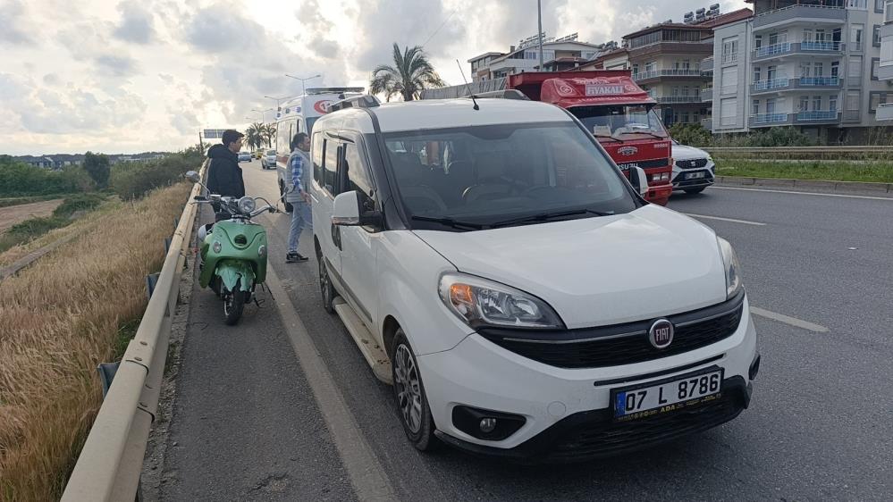 Antalya-Alanya D-400 Karayolu Sanayi Köprülü Kavşağı yakınlarında seyir halindeki motosiklet sürücüsü trafik yoğunluğu nedeniyle hızını düşüren marka hafif ticari araca arkadan çarptı.