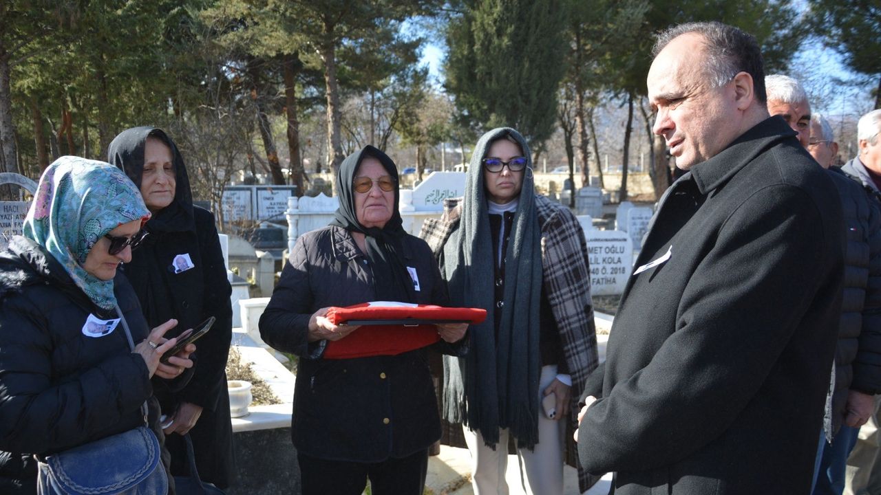 Defin sonrası Korkuteli Kaymakamı Sezgin Üçüncü, Şarlak'ın naaşı üzerindeki Türk bayrağı eşi Havva Şarlak'a teslim etti.