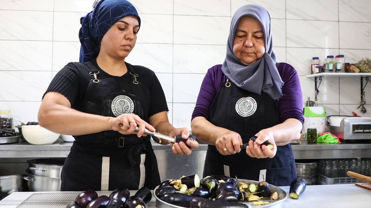 Antalya Büyükşehir Belediyesi'nce kadınların istihdamını artırmak, üretime katılımını desteklemek ve aile ekonomilerine katkı sağlamak amacıyla kurulan Kadın Kooperatifleri'nde kış hazırlıkları tüm hızıyla sürüyor. El emeği, göz nuru ürünler kooperatif mutfaklarında hazırlanıyor ve yine belediye tarafından tahsis edilen satış alanlarında vatandaşlarla buluşuyor. Kadınlar, özellikle kış aylarının vazgeçilmezi olan erişte, tarhana, salça, reçel, turşu gibi ürünlerin üretimini yaparken; aynı zamanda sebze ve meyve kurutarak da doğal gıda üretimini sürdürüyor. Bu ürünler, sağlıklı ve katkısız olmasıyla tüketicilerden ilgi görüyor.