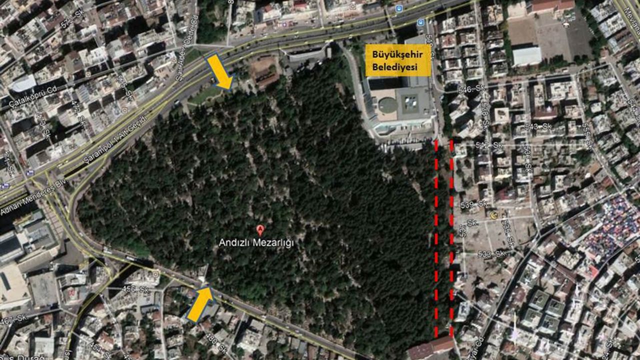 Mimar Şeyda Güvenç Duran, Antalya Büyükşehir Belediyesi'nin imar planında Andızlı Mezarlığı içinden 12 metrelik yol geçirildiğini belirterek, "Yaklaşık 20 yıl önce bu uygulamayı yapmaya kalkışmışlar, mezarlarımızı işaretlemişlerdi. Bu yol Büyükşehir Belediyesi'nin güneyinden başlıyor, ağaçlı alandan güneyindeki ilkokula doğru gidiyor. Biz o zaman Büyükşehir Belediyesi'ne mübadiller olarak itirazımızı yapmıştık ve uygulamayı durdurmuşlardı. 2018 yılında tekrar şeritler çekilmişti. O zaman da dilekçeler oluşturup belediyeye vermiş ve uygulamayı yine durdurmuşlardı. Aslında o zaman çok söylemiştik, 'Plan tadilatı yapılsın, bu yolu buradan kaldırın' diye. Çünkü mezarlıktan niye yol geçsin? Bayramda hiçbir şey yoktu. Bu sefer birden yol açılmış. Ama bir de yeni çukur var. Onun neden yapıldığını bilmiyoruz. 13 kadar mezar işaretlenmiş, kaldırılacak ve 'tebligat gönderdik' diyorlar. Biz de çok huzursuzuz. Yolun devamı açıldığı anda büyüklerimizin 100'den fazla mezarı gidecek. Bunlar mübadele mezarları, zaten Selanik'ten buraya göç etmişler. Mezarlıkta da mı rahat yok" dedi.