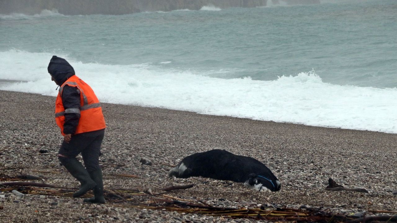 Dünyaca ünlü Konyaaltı Sahili’nde dev dalgalar oluşurken, kıyıya vurmuş telef olmuş bir dana görüldü. Sabah erken saatlerde sahile vurduğu değerlendirilen hayvan için belediye ekiplerine bilgi verildi.