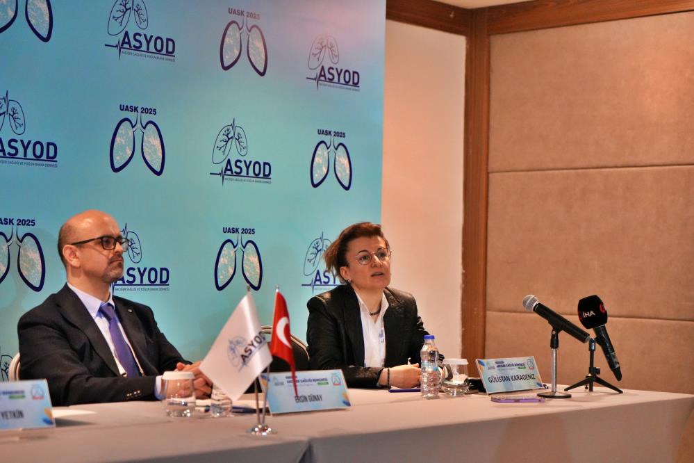 Açılışta düzenlenen basın toplantısında UASK Kongre Başkanı Prof. Dr. Ersin Günay, ASYOD Başkanı Prof. Dr. Ahmet Emin Erbaycu, Bilimsel Komite Başkanı Prof. Dr. Gülistan Karadeniz, ASYOD Yönetim Kurulu Üyeleri Prof. Dr. Tevfik Özlü ve Prof. Dr. Akın Kaya açıklamalarda bulundu. Kongrede, ASYOD Yönetim Kurulu Üyesi Prof. Dr. Tevfik Özlü, solunum yolu hastalıklarının nelere sebep olduğunu açıklarken KOAH’la ilgilide önemli açıklamalara yer verdi. “Kronik Obstrüktif Akciğer Hastalığı yani KOAH, genellikle 40-50 yaşından sonra fark ediliyor. Ama aslında ilk sigarayı içtiğinizde KOAH'ın tetikleyicisi de çekilmiş oluyor. Bu hastalık sinsi ilerler. Akciğer fonksiyonlarının yarısından fazlası kaybedilene kadar belirti vermeyebilir” ifadelerini kullandı.
