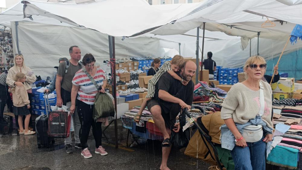 Şiddetli yağmur, tezgahların üzerindeki çadır tentelerin su ile dolmasına neden olurken, tezgahlarının çatısının yıkılmasından korkan esnafların ellerine aldıkları sopa ve fırçalarla tezgahlarının çatısında toplanan suları boşaltmaya çalıştı. Yağmurun durmasından ümidini kesen bazı esnaflar satışa sundukları ürünleri ve tezgahlarını toplarken, aniden güneşin çıkmasıyla birlikte tezgahlarını yeniden açıp ürünlerini sergilemeye devam ettiler.