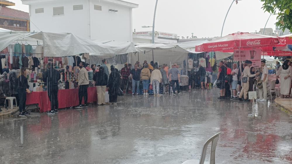 Şiddetli yağmur nedeniyle Perşembe pazarında uzun süre mahsur kalan turistler, yağmurun durmasının ardından kendisini gösteren güneş nedeniyle şaşkına döndü. Turistlerin şaşkınlığı hareketlerinden ve kendi aralarında şakalaşmalarından anlaşılıyordu. Turistlerin bir bölümü yağmurun yeniden başlaması endişesiyle otellerine dönmek üzere minibüs duraklarına giderken büyük bölümünün alışverişlerine kaldığı yerden devam ettikleri gözlendi.