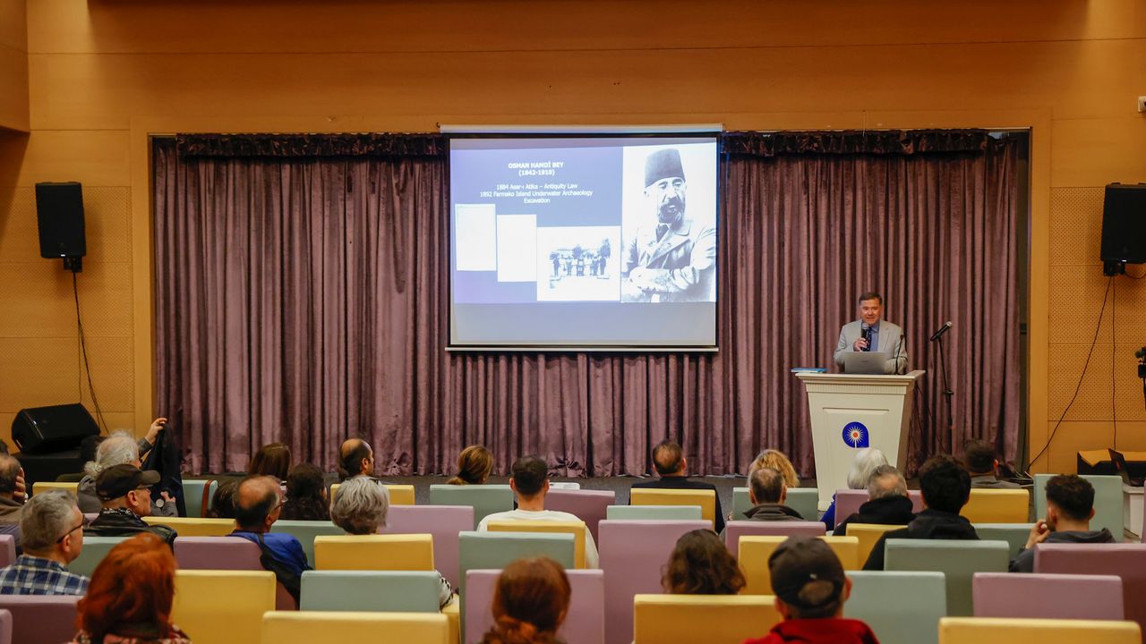 Akdeniz Üniversitesi Kültür Varlıkları Koruma ve Onarımı Bölüm Başkanı Hakan Öniz, Akdeniz'in derinliklerinde tespit edilen batık gemiler, su altında kalmış antik yerleşimler ve bu alanlardan çıkarılan binlerce yıllık eserler hakkında kapsamlı bir sunum yaptı. Öniz ayrıca, sualtı arkeolojisinde kullanılan bilimsel yöntemleri, kazı süreçlerinin nasıl yürütüldüğünü ve gün yüzüne çıkarılan eserlerin korunmasına yönelik çalışmaları ayrıntılı biçimde anlatarak, sualtı keşiflerine ilgi duyan vatandaşları bilgilendirdi.