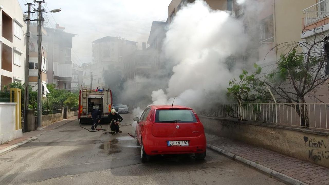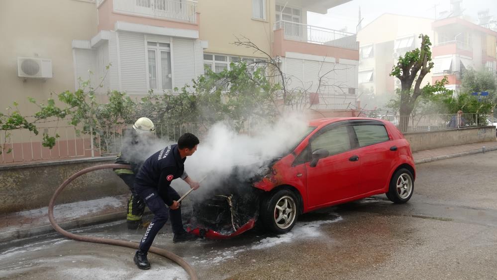 Evine gelen Soner A., Fiat marka aracını park etmek üzereyken motor kısmından dumanlar çıktığını gördü. Otomobilde bulunan yangın tüpü ile yangına müdahale etmek isteyen araç sürücüsünün çabası yetersiz kalınca durumu 112 Acil Çağrı Merkezi'ne bildirdi. İhbar üzerine verilen adrese Antalya Büyükşehir Belediyesi İtfaiye Daire Başkanlığı'na bağlı ekip sevk edildi. Bu sırada aracın motor kısmını alevler sararken Soner A.'nın yardımına komşuları yetişti. Vatandaşlar apartman bahçesinden çektikleri hortumla araçtaki yangını söndürmeye çalıştı. Verilen adrese gelen itfaiye ekiplerinin müdahalesi ile araçtaki yangın kısa sürede söndürüldü.