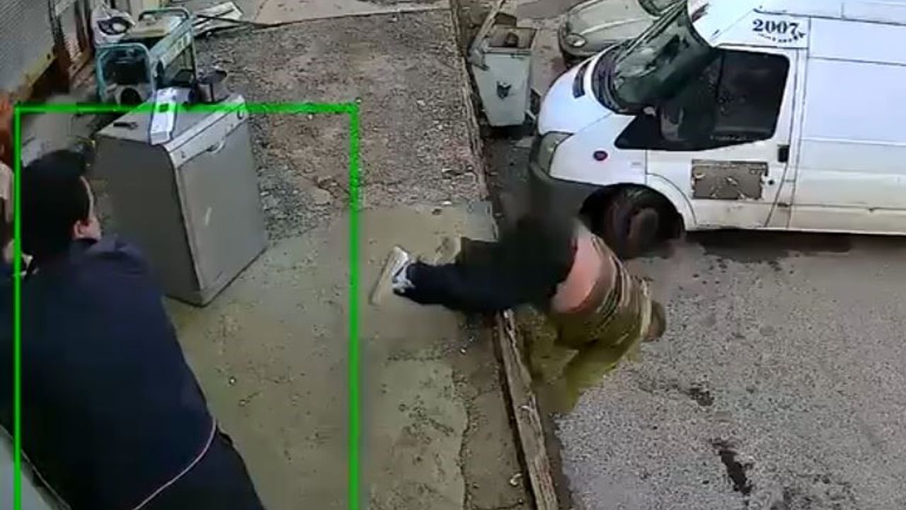 Olay anı ise çevredeki bir iş yerinin güvenlik kamerasında yansıdı.