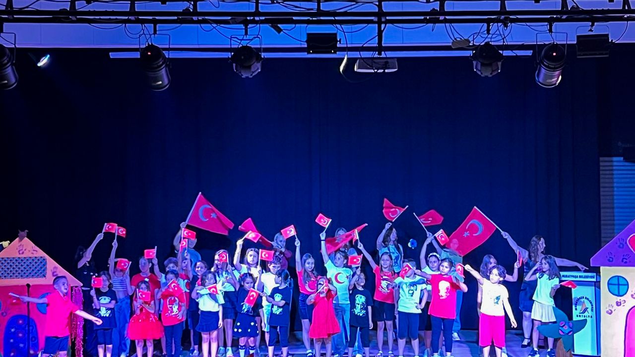Muratpaşa Belediyesi ile Uluslararası Gençlik Kültür ve Sanat Derneği (GENÇDER) iş birliğiyle yürütülen tiyatro eğitimleri, yaz tatili boyunca ASSİM’de devam etti. Eğitimlerde çocuklar sahne duruşu, diksiyon, hitabet, doğaçlama ve rol yapma gibi önemli beceriler kazandı. Eğitimlerin ardından sahneye çıkan çocuklar, “Cüceler Ülkesi” oyunuyla izleyicilere keyifli anlar yaşattı. Gösteriyi, çeşitli sivil toplum kuruluşlarından temsilciler ve aileler takip etti. Rengarenk kostümler ve yaratıcı dekorlar eşliğinde sahne alan minikler, oyunun sonunda ellerinde Türk bayraklarıyla 30 Ağustos Zafer Bayramı’nı coşkuyla kutladı, şiirler okudu, marşlar ve şarkılar seslendirdi.