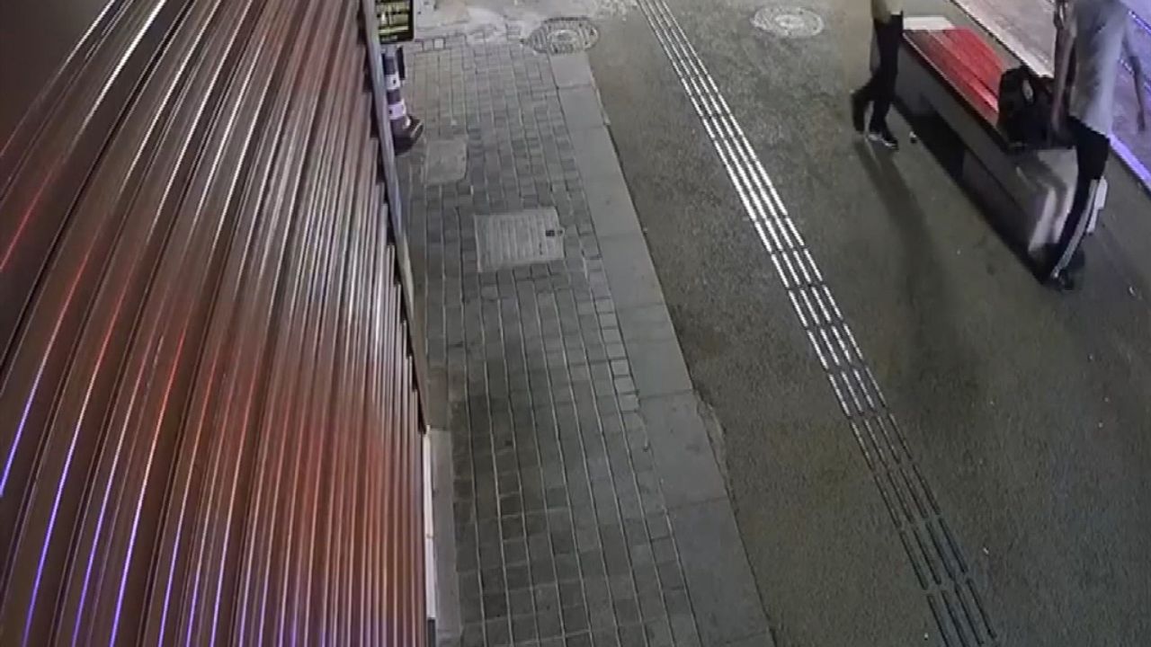 Bir iş yerinin güvenlik kamerasına yansıyan görüntülerde, Ali T.'nin sırt çantası ve valiziyle bankta oturan Ertuğrul D.'nin yanına geldiği, sigara istediği görüldü. Ali T., sigarayı aldıktan sonra tekrar Ertuğrul D.'nin yanına gelerek, çakmak istediği ve bu esnada tokat ve kafa attığı, yere düşen Ertuğrul D.'nin kafasına tekme attığı da kameraya yansıdı. Görüntülerde Ali T.'nin, 'Baba sigara var mı? Bir tane versene, beni tanıyor musun? Sen benim kim olduğumu biliyor musun? Benim adım Ali' dediği duyuldu.