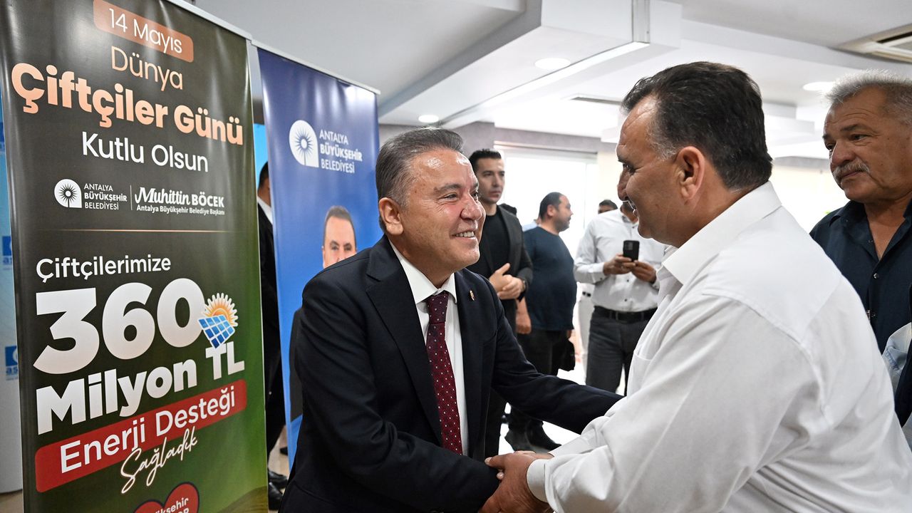 Antalya Büyükşehir Belediye Başkanı Muhittin Böcek, 14 Mayıs Dünya Çiftçiler Günü’nde, tarımın başkenti Antalya’da çiftçilerle bir araya geldi. ASAT Toplantı Salonu’nda gerçekleştirilen buluşmaya, Antalya’nın birçok farklı ilçesinden üretici, kooperatif ve dernek temsilcisi katıldı. Tarım emekçilerinin ‘Dünya Çiftçiler Günü’nü kutlayarak konuşmasına başlayan Başkan Muhittin Böcek, ilacın, gübrenin, mazotun ne kadar zor şartlarda alındığını bilen bir başkan olarak yerelden kalkınma projeleriyle üreticilere destek olmaya çalıştıklarını belirtti.