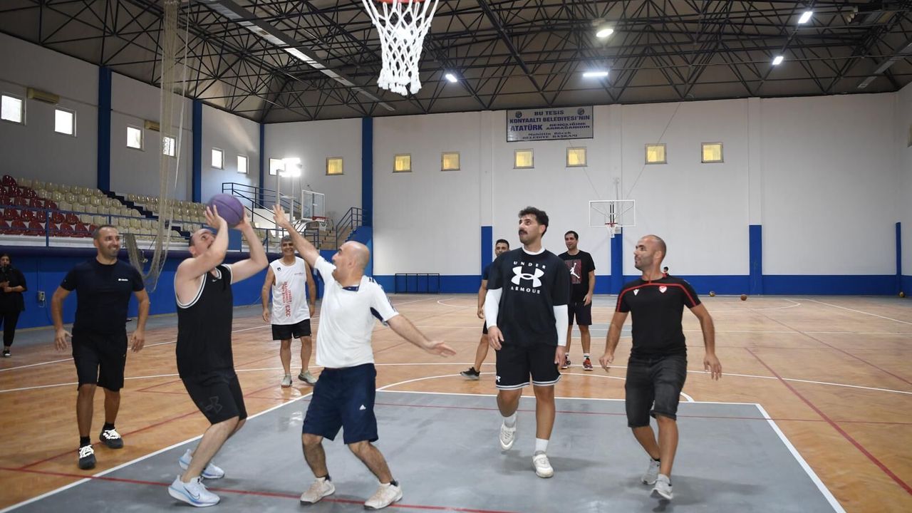 Konyaaltı Belediyesi’nin uhdesine alarak halka kazandırdığı yeni spor tesisinde çalışmalar tüm hızıyla devam ediyor. Çalışmaların sona yaklaşmasıyla beraber tamamlanan noktalar, ekipler tarafından işler hale getiriliyor. Tüm sporlara olduğu gibi basketbola ilgisiyle bilinen Konyaaltı Belediye Başkanı Cem Kotan, yeni tesisin basketbol sahasını ilk deneyen isim oldu. Başkan Kotan, Konyaaltı Belediyesi Başkan Yardımcıları ve Birim Müdürlerinin de yer aldığı bir basketbol maçı planladı.