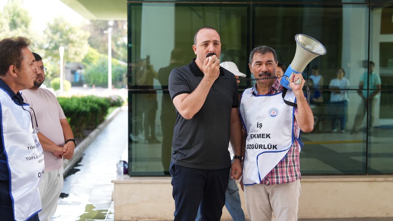 Memurları ilgilendiren 8’inci Dönem Kamu Toplu Sözleşmeleri kapsamında memur sendikaları ile Çalışma ve Sosyal Güvenlik Bakanlığı’ndaki müzakereler devam ediyor. Yaklaşık 6 buçuk milyon memur ve memur emeklisini ilgilendiren müzakereler devam ederken, hükümetin ikinci zam teklifi de belli oldu. Belli olan zam teklifinin ardından sendikalar çeşitli eylemlerle teklife karşı duruşlarını ortaya koymaya başladı. Eylem kararına uyan Tüm Bel-Sen Antalya Şubesi, Başkan İlhan Karakurt öncülüğünde mesai saatinin ilk dakikalarında Konyaaltı Belediyesi önünde eylem yaparak seslerini duyurdu. Konyaaltı Belediye Başkanı Cem Kotan da eyleme katılarak memurların yanında durdu ve sloganlara alkışla eşlik etti. Başkan İlhan Karakurt, Başkan Cem Kotan’a verdiği destek için teşekkür etti. Başkan Kotan da işçinin ve memurun yanında duran anlayıştan asla vazgeçmeyeceklerini ve verilen zam tekliflerinin kabul edilebilir olmadığını vurguladı.