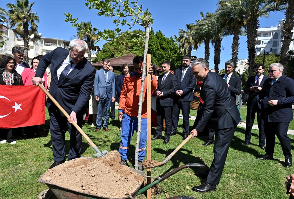 Muratpaşa Belediyesi’nin Güzeloba Mahallesi Örnekköy bölgesinde bulunan Ukrayna Kültür Parkı’nda iki ülke arasında dostluk sembolü olarak ağaç dikme töreni gerçekleştirildi. Başkan Uysal ve Bakan Sibiha’nın da katıldığı etkinlik, İstiklal Marşı ve Ukrayna Milli Marşı’nın okunmasıyla başladı.