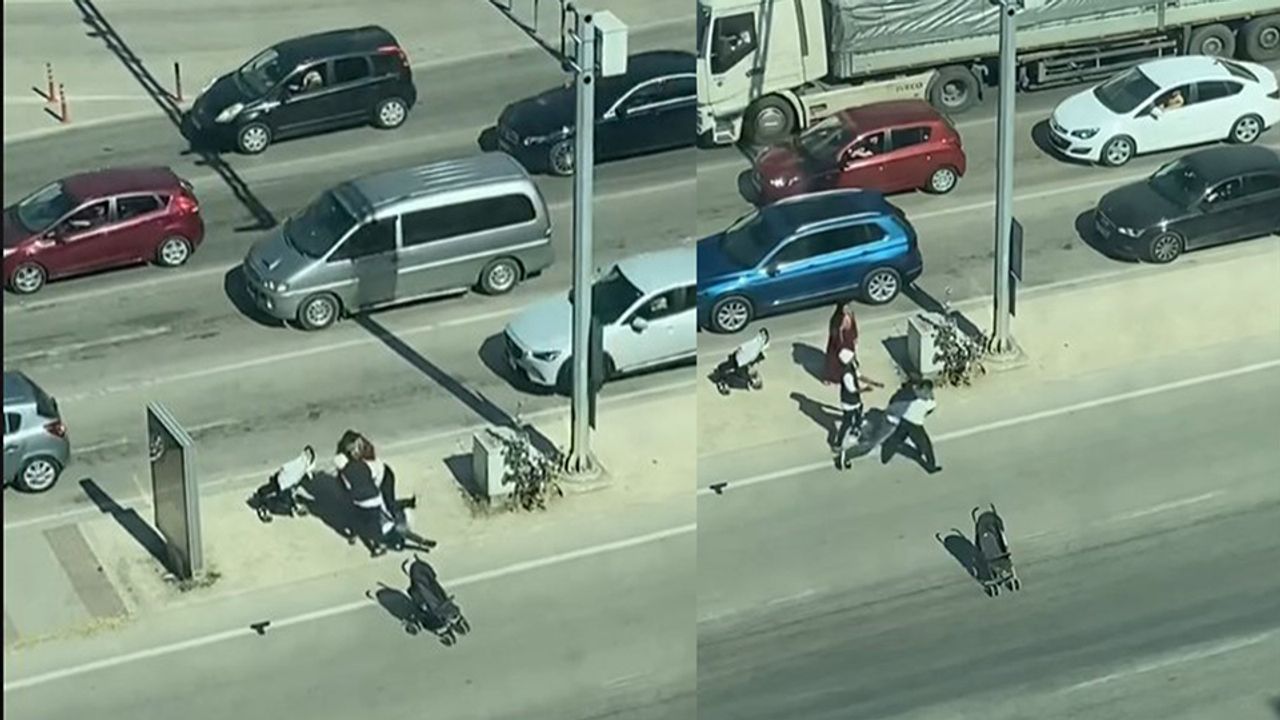 Nilüfer Beşevler kavşağında orta refüjde birbirine giren 2 dilenci grubun tekme tokat kavgası bir vatandaş tarafından saniye saniye kaydedildi. Kendilerini acındırıp para koparmak için yanlarında bebek arabası gezdiren iki farklı dilenci grubu arasında mıntıka tartışması yaşanınca taraflar birbirine girdi. Tekme tokat kavga sırasında bebek arabalarından biri orta refüjden yola inip ilerlemeye başladı. Üzeri açılan bebek arabasında bebeğin olmadığı dilencilerin istismar yoluyla vatandaşları nasıl kandırdıkları bir kez daha gözler önüne serildi.
