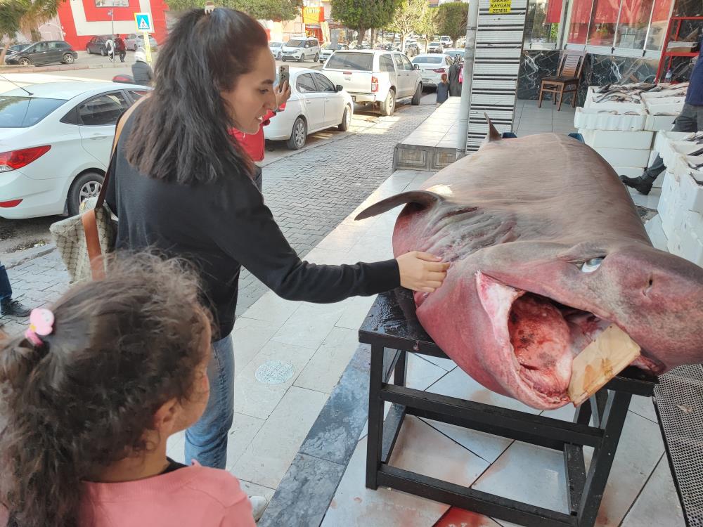 Köpek balığını yakalayıp tezgahta sergileyen Şahin Gökalp’in tezgahına vatandaşlar yoğun ilgi gösterdi. Tezgahta balığı gören kimi vatandaş ona dokunup fotoğraf çektirdi kimi ise dokunmaya korktu.