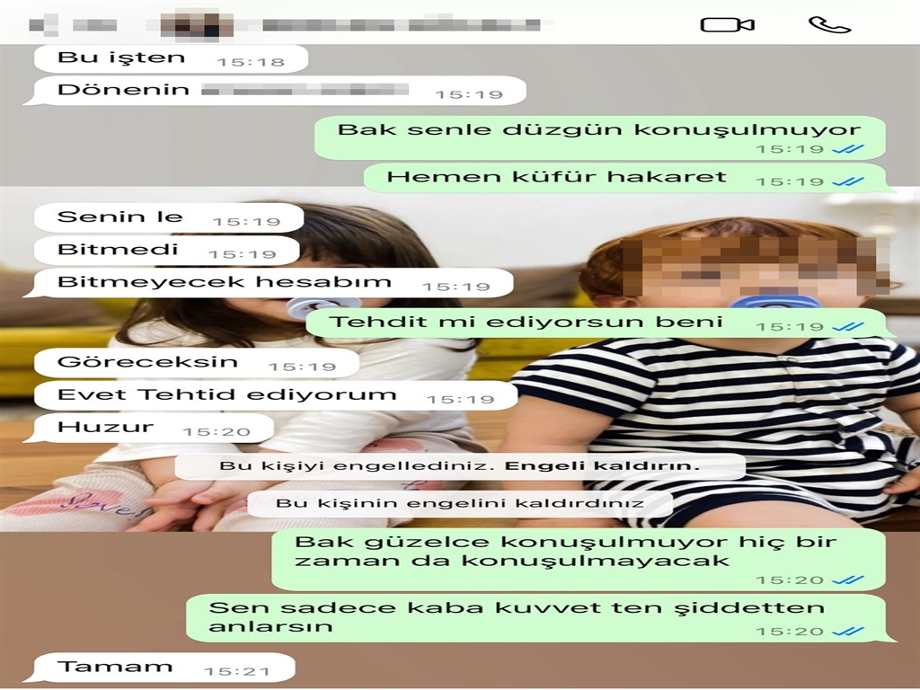 5 ve 6 yaşlarında iki çocuğuyla birlikte yaşadığını ve esnaf olarak ekmek parasını kazandığını anlatan Meryem G., eşinin sosyal medyada iş yerine yönelik iftira ve karalama kampanyaları yürüttüğünü de öne sürerek, “Kişisel tehditlerinin yanı sıra iş yerime zarar veriyor. Sahte hesaplardan ‘Bu kadından alışveriş yapmayın’ diye paylaşımlar yapıyor. Ekmeğimle oynuyor. Ailesine de defalarca söyledim. ‘Oğlunuzu durdurun’ dedim ama hiçbir müdahale olmadı. ‘Laf dinlemiyor’ deyip geçiştirdiler. Geçmişte eşinden birçok kez fiziksel şiddet gördüm, hamileyken bile beni arabadan fırlattı. Defalarca bıçakla tehdit etti. Şiddetin her türlüsünü yaşadım. Korktum, bastırıldım ama artık susmayacağım. Kızım babasını görmek istemiyor. Oğlum bu konular hakkında konuşmaktan kaçınıyor. Çocuklarım psikolojik destek alıyor” diye konuştu.