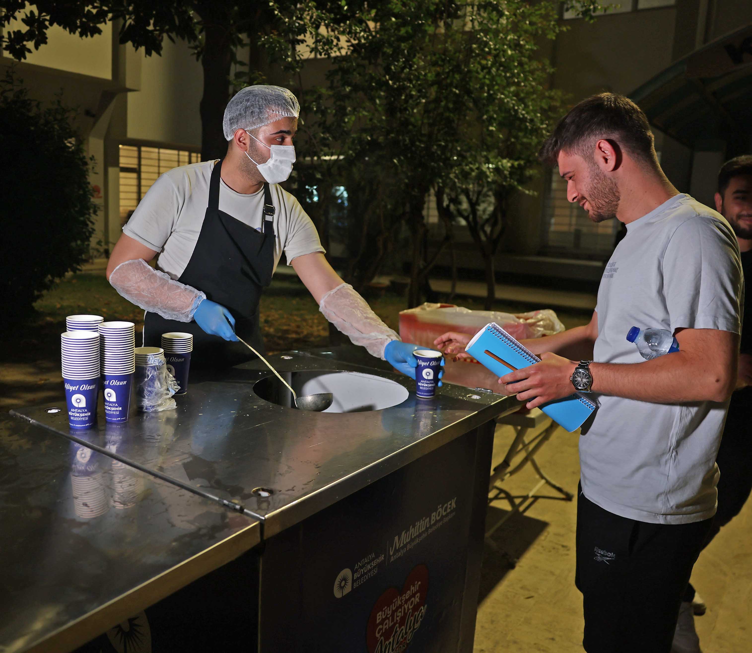 Diş Hekimliği 1. Sınıf öğrencisi Melik Yaşar da “Final sınavlarının telaşı yüzünden nerdeyse 7/24 kütüphanede yaşıyoruz. Akşam erken saatte yemek yediğimiz için gece ders çalışırken acıkabiliyoruz. Aşağı inip vakit kaybetmeden sıcak çorbamızı içiyoruz” diye konuştu. Öğrenciler, çorba dağıtımından duydukları memnuniyeti dile getirerek, Büyükşehir Belediyesi'ne teşekkür etti.