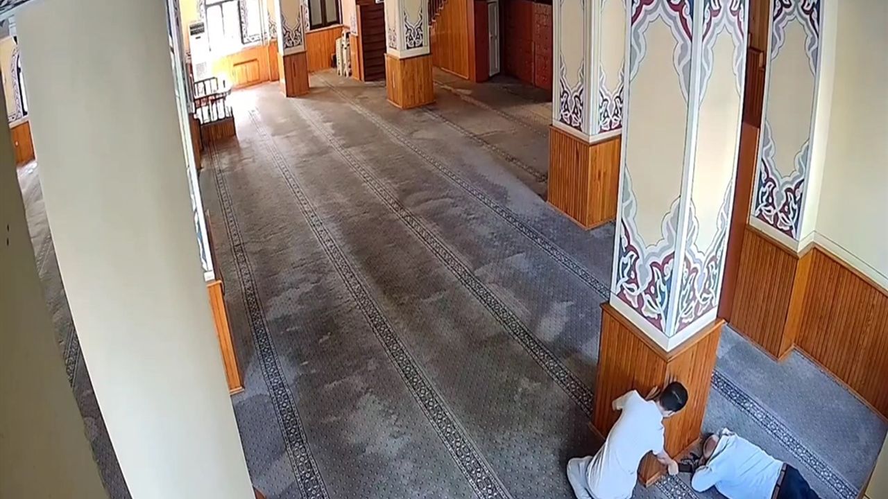 Uğur Mumcu Mahallesi’ndeki iddiaya göre, camiye giren şüpheli, yaklaşık iki saat boyunca içeride uyudu. Ardından caminin başka bölümüne geçen şüpheli, burada uyuyan kişinin başucuna bıraktığı cep telefonunu farketti. Cami içinde bir süre daha oyalanan şüpheli, ardından cep telefonunu alarak cebine koydu ve hızla camiden ayrıldı. O anlar caminin güvenlik kamerasına saniye saniye yansıdı.