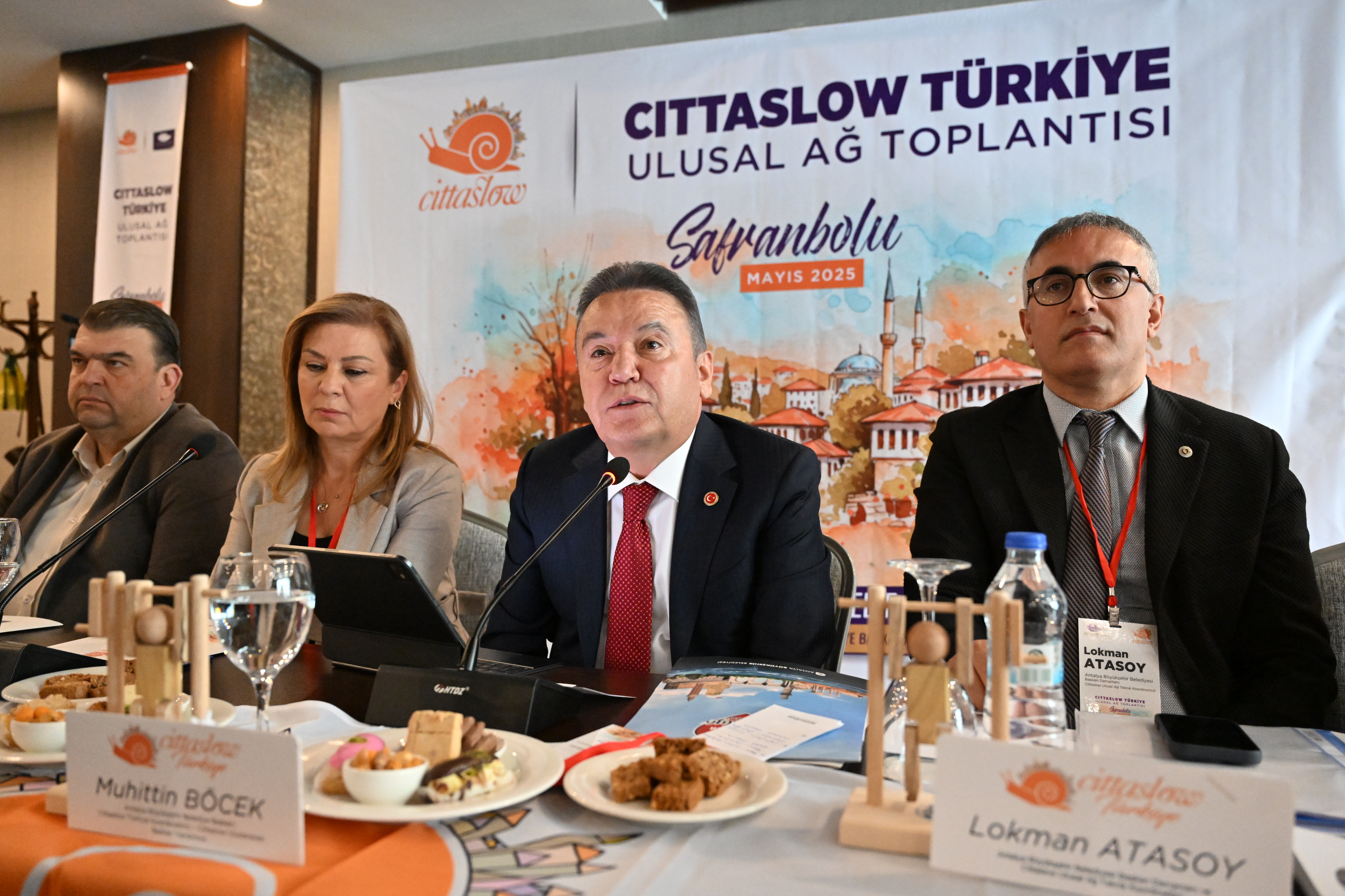 Toplantının açılış konuşmasını yapan Başkan Böcek, fuar ve tanıtım organizasyonlarının şehirlerin tanıtımı açısından büyük önem taşıdığını belirterek, “Cittaslow, 7 farklı kategori ve 73 kriterle değerlendirilen çok önemli bir organizasyon. Antalya olarak gittiğimiz fuarlarda bu yapıyı anlatarak turizmi daha ileriye taşımaya çalışıyoruz. Antalya, 2024 yılında 27 milyon yerli ve yabancı turisti ağırladı. Amacımız her geçen gün turizmi daha iyi noktalara taşımak” dedi.