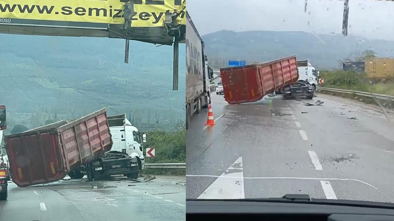 Bursa-Gemlik yolunda seyir halinde olan tırın damperi açılarak üst geçide çarptı.