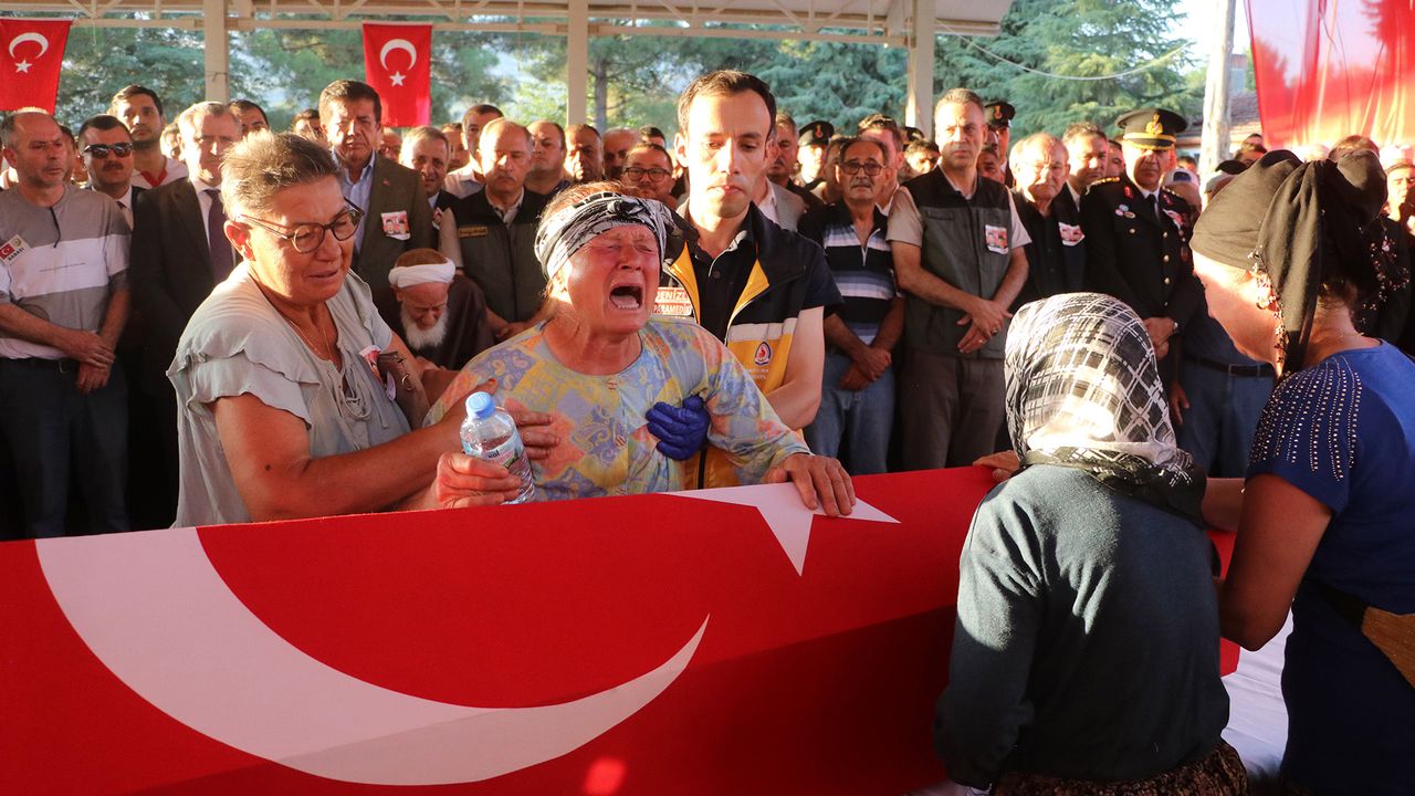Şahin'in cenaze töreninin ardından bu kez de diğer Sercan Ütni için Sazak Mahallesi'nde cenaze töreni yapıldı. Mahalle meydanında kılınan cenaze namazının ardından şehit Ütni'nin cenazesi mahalle mezarlığında gözyaşları arasında toprağa verildi. Bakan Bak, Şahin ve Ütni ailelerine başsağlığı dileğinde bulundu.