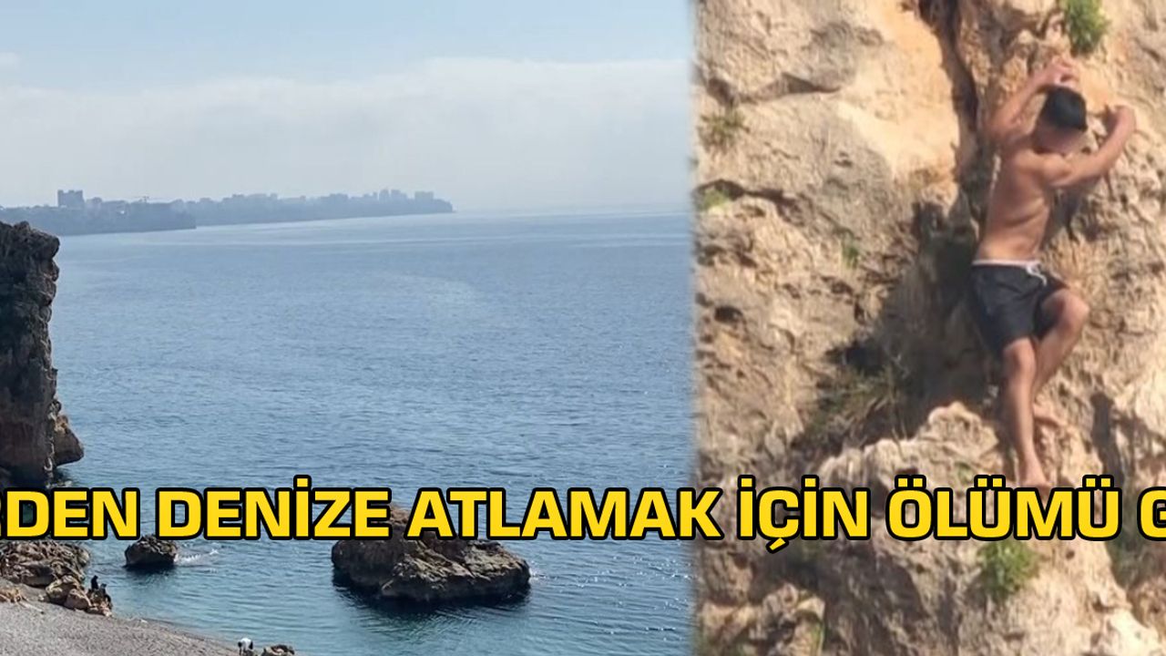 Antalya’da falezlerin üzerindeki sivri kayalıklarda tehlikeli bir şekilde ilerleyen genç, yaklaşık 15 metre yükseklikten denize atladı. Gencin o anları ve atlayışı cep telefonu kamerasına saniye saniye yansıdı.