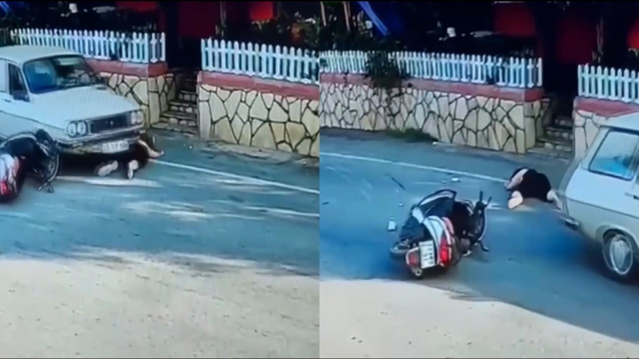 Durmayan otomobil, düşen motosiklet sürücüsünün üzerinden geçti. Ağır yaralanan genç kız hastaneye kaldırılırken, sürücü de jandarma tarafından yakalanıp gözaltına alındı.