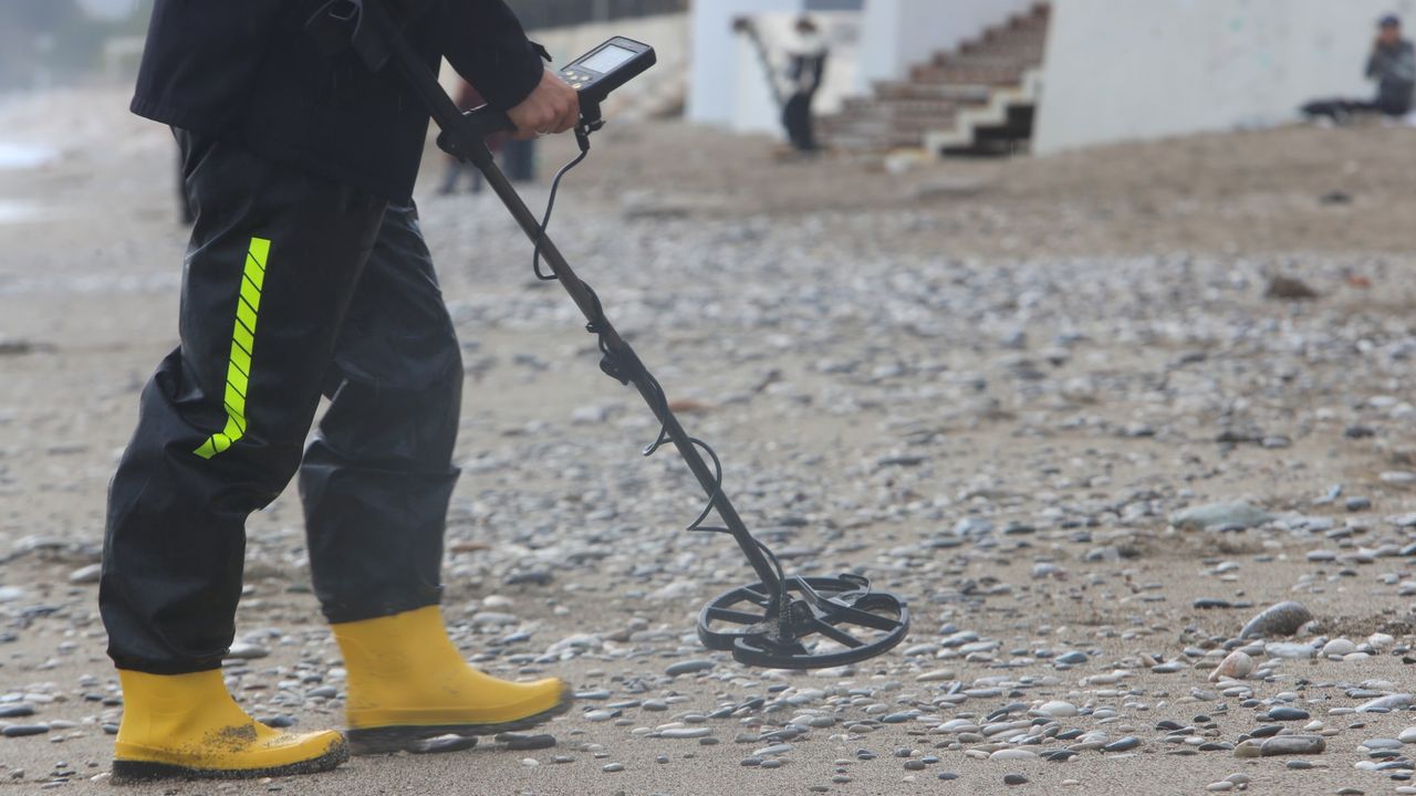 Şiddetli rüzgar ve dalgalara rağmen dünyaca ünlü Konyaaltı Sahili'nde bazı vatandaşlar ellerinde dedektörlerle dev dalgaların vurduğu sahilde vatandaşlar tarafından denizde düşürülen ve akıntının sahile sürüklediği altın, gümüş ve para gibi kıymetli eşyaları aradı.