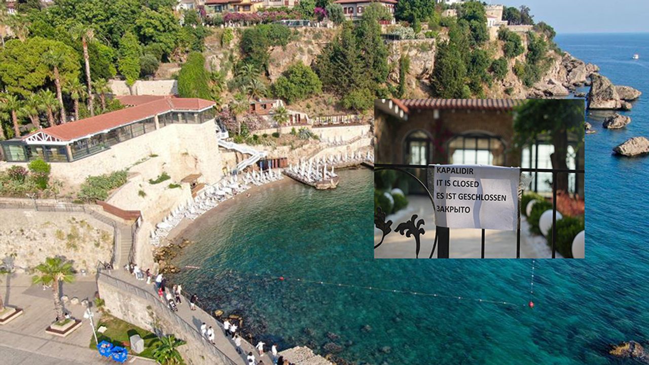 Antalya'nın simge noktalarından biri olan Mermerli Plajı'nda bugün giriş kapısına "Kapalıdır" yazılı tabela yerleştirildi. Tadilat nedeniyle; kapının kapalı tutulduğu, plaj girişinde yer alan umumi tuvaletlerde de tıkanma yaşandığı ve bu nedenle üst tarafın da kullanım dışı bırakıldığı öğrenildi.