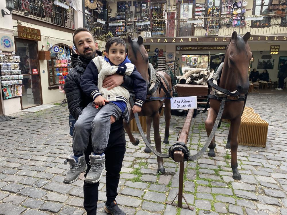 Ortaya çıkan bu ilginç durum sonrası turistik amaçla ziyarete gelen Recep Sarıaslan, karşılaştığı görüntü sonrası şok yaşadıklarını belirterek atların oğlunun ilgisini çektiğini ancak bindiremediklerini ifade etti. Çözüm için belediyeye çağrıda bulunan Sarıaslan, "Eskişehir'e turist olarak geldik, Odunpazarı'nı da merak ediyorduk. Oğlum buraya gelip atları görünce çok ilgisini çekti, binmek de istiyor aslında ama bindiremiyoruz. Bindirebilsek daha mutlu olurdu. Ama yazıyı görünce biz de yasaktır diye korktuk, bindirmedik. Ben de dedim ki, 'bari önüne geç de öyle fotoğraf çekilelim.' Buradan çarşı yetkililerine de seslenmek istiyorum, hiç olmazsa çocuklara izin versinler. Çünkü bu şekilde yasak olunca parka gidip de oyun oynayamamaya benziyor. Belli ki çocukların ilgisini çeken bir şey bu heykeller, yasağı kaldırırlarsa çocuklar da daha mutlu olurlar" dedi.