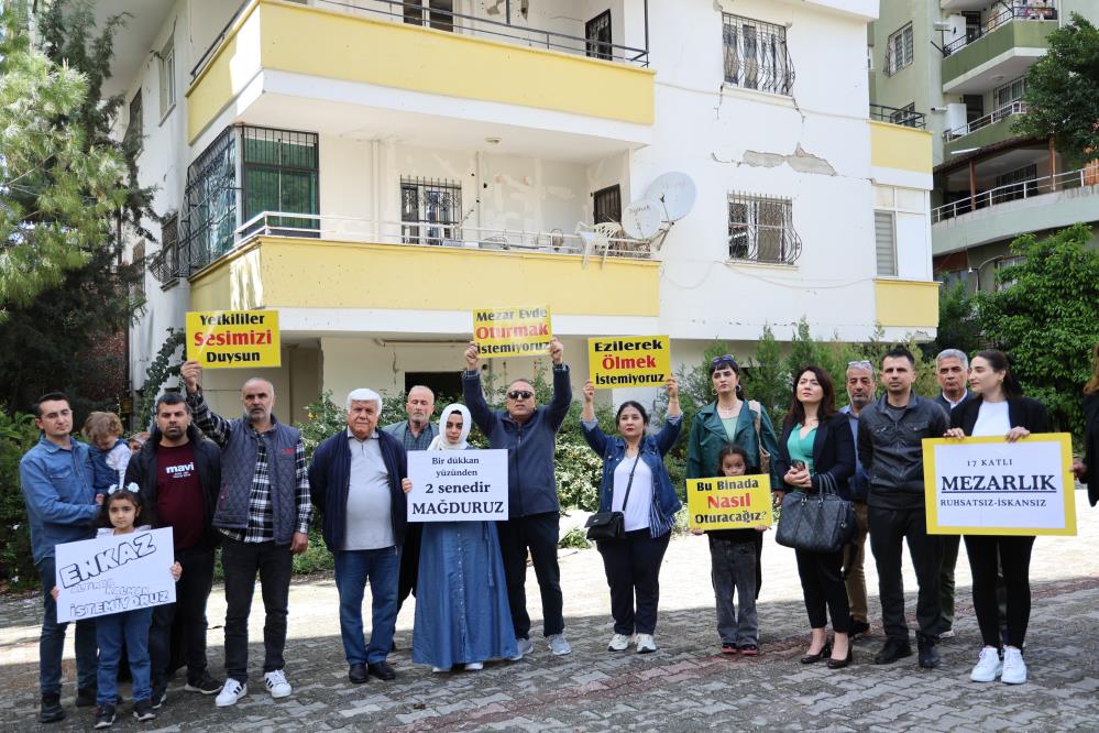 Rapor sonuçlarını istinafa taşıdığını ifade eden Avukat Nazan Akça Subaşı, "Bu binaya Çevre, Şehircilik İl Müdürlüğü tarafından 2 defa 'orta hasarlı' raporu verildi. Tam yıkım işlemleri başlanılacakken binada bulunan medikal firması dava açtı. Adana 2. İdare Mahkemesi yeniden rapor istedi ve o raporda 'az hasarlı' verildiği için binanın yıkımı durduruldu. Biz de bunun üzerine yeniden tespit yaptırdık ve binada korozyonların başladığı, her an yıkılma tehlikesi var denilerek yeniden 'orta hasarlı' raporu alıp karara itiraz ettik. Şu anda istinaftan sonuç bekliyoruz. Bu kadar insanı kimse bu mezarlığa hapsetmesin" diye konuştu.