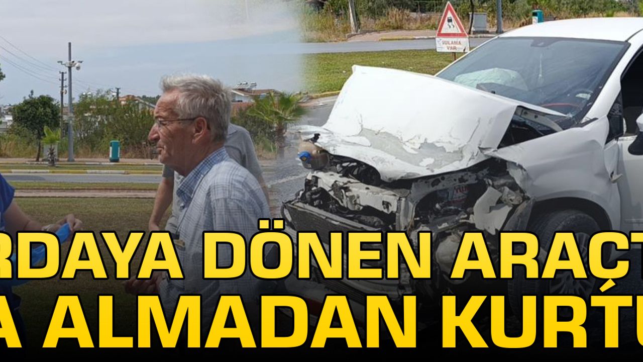 Hurdaya dönen araçtan yara almadan kurtuldu