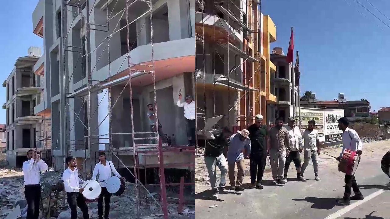 Kahramanmaraş merkezli depremlerde ağır hasar gören Hatay'da asrın felaketinin yaraları sarılmaya devam ediyor. Hatay Valisi Mustafa Masatlı koordinesinde kentin dört bir yanında deprem konutları inşası sürüyor. Arsuz ilçesine bağlı Madenli Mahallesi'nde de 40 derece sıcakta çalışan işçilere moral vermek isteyen şantiye şefi Aziz Van Üşür, davullu ve zurnalı sürpriz yaptı. Şantiye içerisinde davul ve zurna sesleri yankılandı. İlginç anlar sosyal medyada ilgi odağı olurken, yapılan sürpriz takdir topladı.